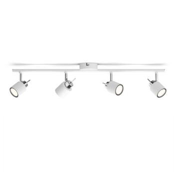 Kantel het licht in alle richtingen met de functionele Philips Essentials Meranti 4-lichts opbouwspot in het wit. Voor het mooiste lichteffect, combineer je deze functionele opbouwspot met een dimbare energiezuinige Philips LED-lamp met GU10-fitting.