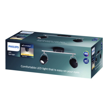 Draai het licht van de Philips spot Rivano 2-lichts elke gewenste richting op. Zijn stijlvolle zwarte spots hangen aan een metalen frame waardoor hij een moderne uitstraling heeft. Deze spot heeft een hoogwaardige geïntegreerde LED-lamp met een optimale lichtopbrengst van 860 lumen. Met een wattage van 5W zijn deze spots ook energie zuinig. Toch liever een witte uitvoering? Deze kun je kopen, zoals ook het gewenste aantal spots. Zie ons assortiment.