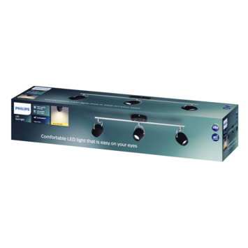 Draai het licht van de Philips Rivano spot 3-lichts elk gewenste richting op. Zijn stijlvolle spots hangen aan een metalen frame waardoor hij een moderne uitstraling heeft. Hij sluit naadloos aan bij de inrichting van jouw huis en verlicht de ruimte met zijn geïntegreerde LED dat ontworpen is voor het comfort van de ogen. Wanneer je hem inschakelt levert deze lamp direct het helderheidsniveau van 1290 lumen. De Rivano is ook te verkrijgen in diverse aantallen spots en een uitvoering in het wit.