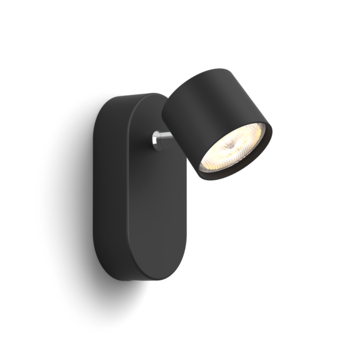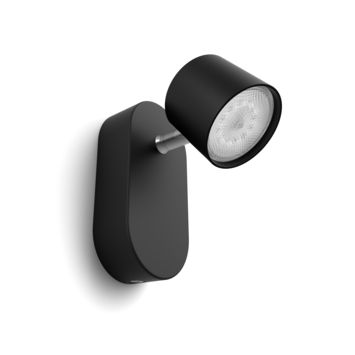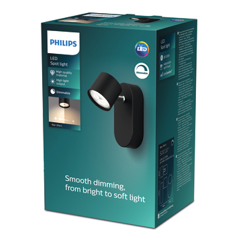 De zwarte Philips Star opbouwspot kan je gemakkelijk dimmen naar het juiste lichtniveau. Zo heb je altijd het juiste licht bij jouw activiteit. Van functioneel helder voor alledaagse taken, naar een zachter licht voor ontspanning. Deze moderne plafondlamp met draaibare spot past in elk interieur.