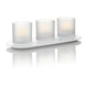 Met decoratieve Philips Theelichtjes met laadstation 3 stuks zorg je voor een gezellige sfeer in huis of buiten. Ze geven een warme gloed en flakkeren als echte kaarsen, maar dan zonder de risico's van kaarsvet en open vuur. Daarnaast zijn ze eenvoudig te gebruiken. Simpelweg kantelen van de kaars is voldoende om deze in of uit te schakelen. Dankzij de inductieoplader en stroomadapter zij ze tevens gemakkelijk op te laden en na opladen overal draadloos te plaatsen. De IP44 waarde betekent dat de lichtjes weerbestendig zijn en daarmee geschikt voor zowel gebruik binnenshuis als buitenshuis. Het theelichtje aan de binnenkant is uitneembaar en past in elke houder. De Philips Theelichtjes met laadstation 3 stuks worden geleverd inclusief lichtbron. De set is dus meteen klaar voor gebruik.
