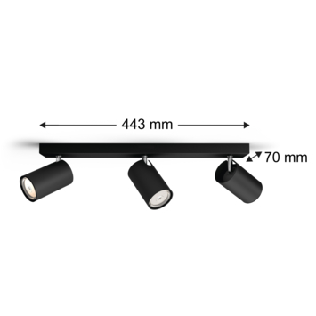 De Philips myLiving triospot uit de serie Kosipo is een mooie, moderne spot voor in jouw interieur. De lamp is voorzien van drie draaibare spots, waardoor de lamp perfect af te stellen is in de gewenste richting. De zwarte kleur maakt deze spot passend in iedere ruimte. Deze spots worden geleverd exclusief lichtbron. Kies bijvoorbeeld voor een WarmGlow LED-lichtbron en geef jouw ruimte extra sfeer. Dit betekent dat hoe meer je de spot dimt, deze steeds warmer licht geeft.