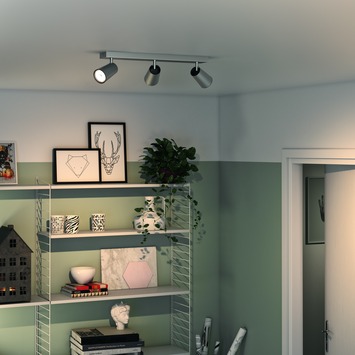 De Philips myLiving triospot uit de serie Paisley is een mooie, moderne spot voor in jouw interieur. De lamp is voorzien van drie draaibare spots, waardoor de lamp perfect af te stellen is in de gewenste richting. De aluminium kleur geeft een stoere touch aan jouw ruimte. Deze spots worden geleverd exclusief lichtbron. Kies bijvoorbeeld voor een WarmGlow LED-lichtbron en geef jouw ruimte extra sfeer. Hoe meer je dimt met WarmGlow, hoe warmer het licht. Op zoek naar een andere kleur? De Paisley serie is naast aluminium grijs ook verkrijgbaar in wit.