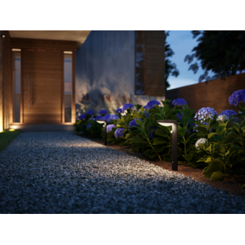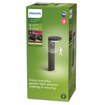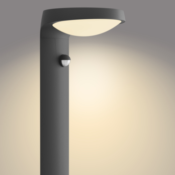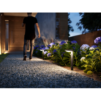 De Philips Tyla LED sokkellamp met geïntegreerde bewegingssensor geeft automatisch warmwit licht bij beweging in de avond en is overdag uit. Ideaal voor het verlichten van je tuinpad. Deze antracietkleurige sokkellamp is gemaakt van aluminium en is weerbestendig (IP44). Geniet van gezellige buitenverlichting met deze praktische Philips LED-lamp.