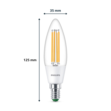 Deze Philips LED kaarslamp met E14-fitting en energielabel A is onze meest energiezuinige lamp ooit. Door 60% minder energieverbruik én een 3,5x langere levensduur dan de gemiddelde LED-lamp bespaar je nóg meer kosten op je energierekening. Omdat deze lamp tot 50 jaar meegaat verspil je ook minder materiaal waardoor je eenvoudig bijdraagt aan een beter klimaat; met LED kan het!