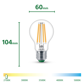 Deze peervormige Philips UltraEfficient LED filamentlamp met energielabel A behoort tot onze meest energiezuinige lampen ooit. Door 50% minder energieverbruik én een 3,5x langere levensduur dan de gemiddelde LED-lamp bespaar je nóg meer kosten op je energierekening. Omdat deze lamp tot 50 jaar meegaat verspil je ook minder materiaal waardoor je eenvoudig bijdraagt aan een beter klimaat; met LED kan het! Deze lamp met E27-fitting geeft gezellig warmwit licht voor een fijne sfeer.
