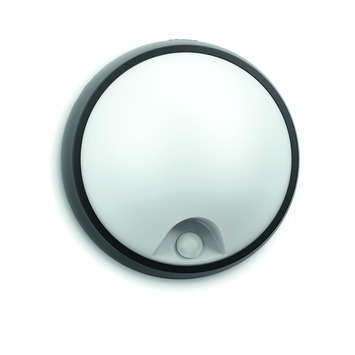 De wandlamp Eagle van Philips is een subtiele ronde wandlamp voor buiten. De wandlamp beschikt over een bewegingssensor en schakelt automatisch het licht in wanneer je thuis komt en waarschuwt je als er iemand aankomt. De lamp wordt geleverd met een LED-lamp van 3 watt. De lamp geeft een warm wit licht en is speciaal voor buiten ontworpen. De wandlamp Eagle heeft een diameter van 17 centimeter en is 7,4 centimeter diep.