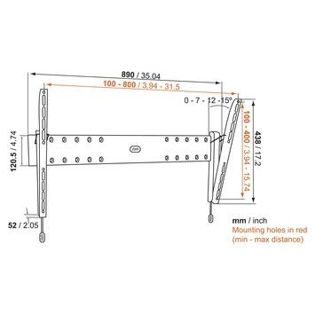 Deze kantelbare TV steun komt slechts 5,2 cm van de wand. Deze TV steun is geschikt voor een platte LCD, LED en Plasma TV van 102cm tot 165cm of van 40" tot 65". Deze maten worden diagonaal gemeten. Het maximale gewicht van de TV is 45kg. Met deze TV steunen worden alle bevestigingsmaterialen meegeleverd. De maximale bevestigingsmaten van de TV zijn 600 x 400mm.
