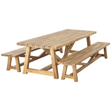 De tuinbank Cascia is een robuuste tuinbank. De bank is gemaakt van hardhout en heeft een teak kleur. De bank heeft een speciale behandeling gehad, waardoor het hout een stuk ruwer geworden is. Dit geeft de tuinbank een stoere en robuuste uitstraling. Om de tuinbank een zachtere uitstraling te geven is de bank verder nog aan te kleden met enkele leuke kussentjes om het geheel een huiselijke sfeer te geven. De tuinbank staat uitermate goed bij de bijbehorende tafel Cascia 300 cm.
