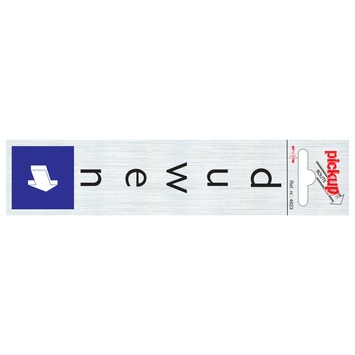 Het Pickup Alu deurbordje duwen staand 165x44mm is zelfklevend. Daardoor brengt u het deurbordje eenvoudig aan. De aluminiumlook geeft dit bordje een luxe, moderne en tijdloze uitstraling. Het bordje heeft een herkenbaar pictogram met een pijl en een helder leesbare tekst. Dit deurbordje maakt deel uit van een serie die bestaat uit diverse producten waarmee u eenvoudig richting of andere signalen kunt communiceren. Het Pickup Alu deurbordje duwen staand is snel te bevestigen en geeft duidelijk aan waar u moet duwen. Afmeting: 44mm breed en 165mm hoog.