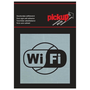 Het Pickup Alu deurbordje wifi 8x8cm is zelfklevend. Daardoor brengt u het deurbordje eenvoudig aan. De aluminiumlook geeft dit bordje een luxe, moderne en tijdloze uitstraling. Het bordje heeft een duidelijk pictogram met goed leesbare tekst. Zo communiceert u uw boodschap helder. Dit vierkante deurbordje maakt deel uit van een serie die bestaat uit diverse producten waarmee u eenvoudig richting of andere signalen kunt communiceren. Het Pickup Alu deurbordje wifi is snel te bevestigen en geeft duidelijk aan dat er in de betreffende ruimte wifi beschikbaar is. Afmeting: 8cm breed en 8cm hoog.