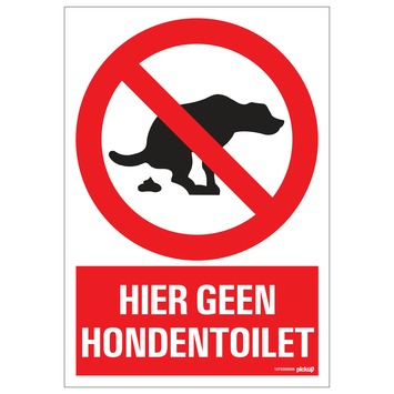 Het Pickup bord hier geen hondentoilet 23x33cm is handig wanneer alleen een pictogram onvoldoende duidelijkheid biedt. Het Pickup bordje is gemaakt van rood en wit polystyreen (kunststof) en bevat zowel een pictogram als tekst. Dit hard plastic bordje maakt deel uit van een serie aanduidingen op gebied van verbod, gebod en waarschuwing. Het kwalitatief hoogwaardige bordje is eenvoudig ergens te bevestigen. Bevestig het bijvoorbeeld met schroeven of met montagelijm. Het kunststof is weersbestendig en verkleurt niet. Dit Pickup bord met pictogram en tekst maakt duidelijk dat op de betreffende plek geen hondentoilet is. Afmetingen: 23cm breed en 33cm hoog.