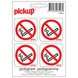 Het Pickup pictogram verboden te roken 10x10cm is een zelfklevende vinyl sticker. Dit verbodsbord met een pictogram van een sigaret is zowel binnen als buiten te gebruiken, zo lang je deze op een glad oppervlak bevestigt. De sticker hecht uitstekend, maar is ook goed te verwijderen zonder lijmresten achter te laten. Deze sticker maakt deel uit van een assortiment Pickup stickers. Deze bieden duidelijkheid op het gebied van gebod, verbod, veiligheid, waarschuwing, brandbestrijding, vluchtweg of andere informatie. Voor elk probleem is een passende oplossing te vinden. Kortom, het Pickup pictogram verboden te roken wijst erop dat je op de betreffende locatie niet mag roken. Afmetingen: 10x10cm.