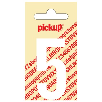 Het Pickup plakcijfer 5 wit mat 60mm is een zelfklevende sticker met het cijfer 5. De Pickup stickers zijn zelfklevend, maar ook goed te verwijderen zonder lijmresten achter te laten. U kunt deze plakletter zowel binnen als buiten gebruiken op een glad oppervlak. De Pickup plakletters en -cijfers zijn leverbaar in verschillende kleuren en maten. Niet alleen ter verduidelijking op werk of thuis, maar ook leuk als decoratie. Met het matwitte Pickup plakcijfer 5 heeft u een duidelijk, goed leesbaar cijfer dat u op elk gewenst glad oppervlak kunt plakken. Afmetingen: 60mm.