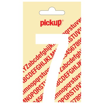 Het Pickup plakcijfer 7 wit mat 90mm is een zelfklevende sticker met het cijfer 7. De Pickup stickers zijn zelfklevend, maar ook goed te verwijderen zonder lijmresten achter te laten. U kunt deze plakletter zowel binnen als buiten gebruiken op een glad oppervlak. De Pickup plakletters en -cijfers zijn leverbaar in verschillende kleuren en maten. Niet alleen ter verduidelijking op werk of thuis, maar ook leuk als decoratie. Met het matwitte Pickup plakcijfer 7 heeft u een duidelijk, goed leesbaar cijfer dat u op elk gewenst glad oppervlak kunt plakken. Afmetingen: 90mm.