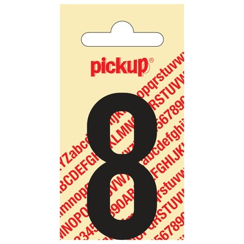 Het Pickup plakcijfer 8 zwart mat 60mm is een zelfklevende sticker met het cijfer 8. De Pickup stickers zijn zelfklevend, maar ook goed te verwijderen zonder lijmresten achter te laten. Je kan deze plakletter zowel binnen als buiten gebruiken op een glad oppervlak. De Pickup plakletters en -cijfers zijn leverbaar in verschillende kleuren en maten. Niet alleen ter verduidelijking op werk of thuis, maar ook leuk als decoratie. Met het matzwarte Pickup plakcijfer 8 heb je een duidelijk, goed leesbaar cijfer dat je op elk gewenst glad oppervlak kunt plakken. Afmetingen: 60mm.