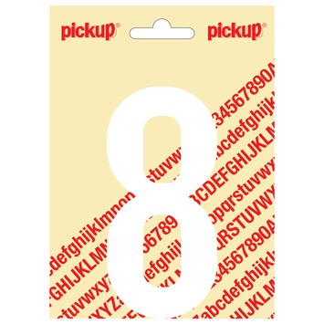 Het Pickup plakcijfer 8 wit mat 120mm is een zelfklevende sticker met het cijfer 8. De Pickup stickers zijn zelfklevend, maar ook goed te verwijderen zonder lijmresten achter te laten. U kunt deze plakletter zowel binnen als buiten gebruiken op een glad oppervlak. De Pickup plakletters en -cijfers zijn leverbaar in verschillende kleuren en maten. Niet alleen ter verduidelijking op werk of thuis, maar ook leuk als decoratie. Met het matwitte Pickup plakcijfer 8 heeft u een duidelijk, goed leesbaar cijfer dat u op elk gewenst glad oppervlak kunt plakken. Afmetingen: 120mm.