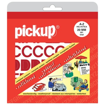 Pickup plakletter A-Z rood 20mm plakt u eenvoudig op elk glad oppervlak. Het meegeleverde siliconenvel met ruitjes helpt u de letters netjes recht te plaatsen. Hierdoor plakt u nooit scheef. In de verpakking vindt u ook een zelfklevend strookje. Hiermee brengt u de letters simpel aan op het voorwerp dat u wilt beplakken. Pickup plakletter A-Z rood 20mm hecht uitstekend en toch zijn de stickers goed te verwijderen zonder vervelende lijmresten achter te laten. Kortom, Pickup plakletter A-Z rood 20mm is een prima keuze voor kantoor, thuis, hobby en decoratieve uitingen.