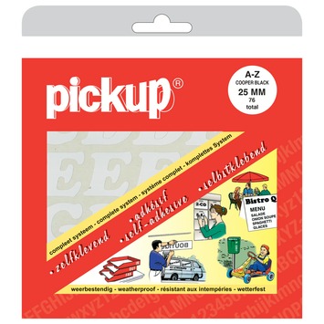 Pickup plakletter A-Z wit 25mm plakt u eenvoudig op elk glad oppervlak. Het meegeleverde siliconenvel met ruitjes helpt u de letters netjes recht te plaatsen. Hierdoor plakt u nooit scheef. In de verpakking vindt u ook een zelfklevend strookje. Hiermee brengt u de letters simpel aan op het voorwerp dat u wilt beplakken. Pickup plakletter A-Z wit 25mm hecht uitstekend en toch zijn de stickers goed te verwijderen zonder vervelende lijmresten achter te laten. Kortom, Pickup plakletter A-Z wit 25mm is een prima keuze voor kantoor, thuis, hobby en decoratieve uitingen.