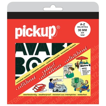 Pickup plakletter A-Z zwart 30mm plak je eenvoudig op elk glad oppervlak. Het meegeleverde siliconenvel met ruitjes help je de letters netjes recht te plaatsen. Hierdoor plak je nooit scheef. In de verpakking vind je ook een zelfklevend strookje. Hiermee breng je deze zwarte letters simpel aan op het voorwerp dat je wilt beplakken. Pickup plakletter A-Z zwart 30mm hecht uitstekend en toch zijn de stickers goed te verwijderen zonder vervelende lijmresten achter te laten. Kortom, Pickup plakletter A-Z zwart 30mm is een prima keuze voor kantoor, thuis, hobby en decoratieve uitingen.