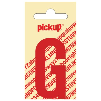 Pickup plakletter G rood 60mm plakt u eenvoudig op elk glad oppervlak. Deze sticker is van hoge kwaliteit en eenvoudig aan te brengen. In een handomdraai maakt u objecten duidelijker en beter leesbaar. Deze plakletter is weersbestendig en waterbestendig. U kunt hem dus ook buiten plakken. Waar u ook wilt plakken, de Pickup plakletter G rood 60mm is op zijn plek. Deze sticker hecht uitstekend, maar is toch goed te verwijderen. U blijft daardoor niet met vervelende lijmresten zitten. Kortom, Pickup plakletter G rood 60mm is een prima keuze voor kantoor, thuis, hobby en decoratieve uitingen.