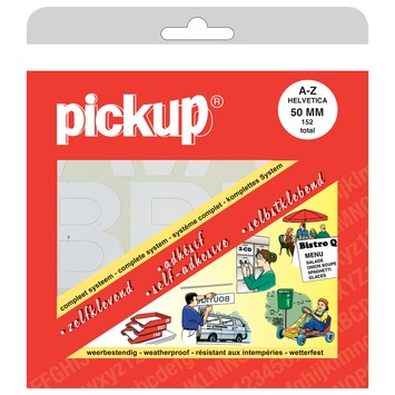 Pickup plakletters A-Z Helvetica wit 50 mm plakt u eenvoudig op elk glad oppervlak. Het meegeleverde siliconenvel met ruitjes helpt u de letters netjes recht te plaatsen. Hierdoor plakt u nooit scheef. In de verpakking vindt u ook een zelfklevend strookje. Hiermee brengt u de letters simpel aan op het voorwerp dat u wilt beplakken. Pickup plakletters A-Z Helvetica wit 50 mm hechten uitstekend en toch zijn de stickers goed te verwijderen zonder vervelende lijmresten achter te laten. Kortom, Pickup plakletters A-Z Helvetica wit 50 mm zijn een prima keuze voor kantoor, thuis, hobby en decoratieve uitingen.