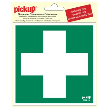 Pickup sticker eerste hulp 15x15cm plak je eenvoudig op elk glad oppervlak. Deze sticker is speciaal ontwikkeld voor aanduidingen op gebied van vluchtweg en brandbeveiliging en voldoet aan de nieuwste ISO 7010 norm. Alle uitingen moeten hier in de toekomst aan voldoen. Deze zelfklevende aanduiding biedt een oplossing daar waar duidelijkheid van levensbelang is. De sticker is weersbestendig en waterbestendig. Je kan de Pickup sticker eerste hulp 15x15cm dus ook buiten plakken. Deze vinyl sticker hecht uitstekend, maar is toch goed te verwijderen. Je blijft daardoor niet met vervelende lijmresten zitten. Kortom, Pickup sticker eerste hulp 15x15cm is een prima keuze wanneer veiligheid voorop staat.