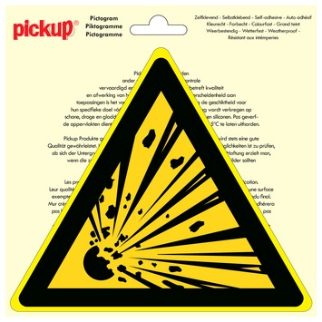 Pickup sticker explosieve stoffen Ø20cm plakt u eenvoudig op elk glad oppervlak. Deze sticker met een doorsnede van 20cm is van hoge kwaliteit en eenvoudig aan te brengen. Het biedt een oplossing daar waar duidelijkheid van levensbelang is. Deze sticker is weersbestendig en waterbestendig. U kunt hem dus ook buiten plakken. Waar u ook wilt plakken, de Pickup sticker explosieve stoffen Ø20cm is op zijn plek. Deze vinyl sticker hecht uitstekend, maar is toch goed te verwijderen. U blijft daardoor niet met vervelende lijmresten zitten. Kortom, Pickup sticker explosieve stoffen Ø20cm is een prima keuze wanneer veiligheid voorop staat.