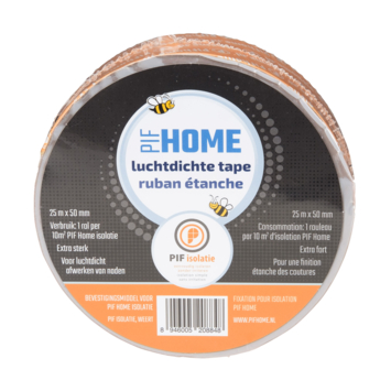 Met PIF Home luchtdichte tape werk je de naden volledig luchtdicht af. Hiermee voorkom je vochtproblemen. Op een rol zit 25 meter tape en de breedte is 50 mm.