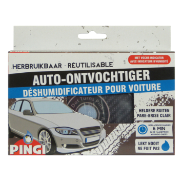 De Pingi auto-ontvochtiger 300g is de perfecte oplossing voor beslagen ruiten en andere vochtproblemen in uw auto, caravan of boot. Uitermate geschikt voor de winter. Trekt het vocht als een magneet uit de lucht en houdt het veilig vast, zonder kans op lekken.