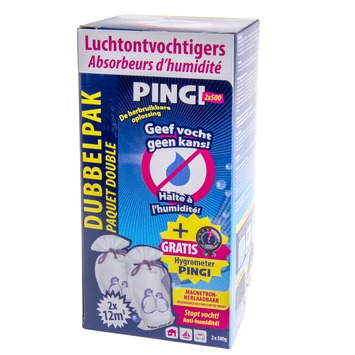 Pingi luchtontvochter 2x500 gram met hygrometer