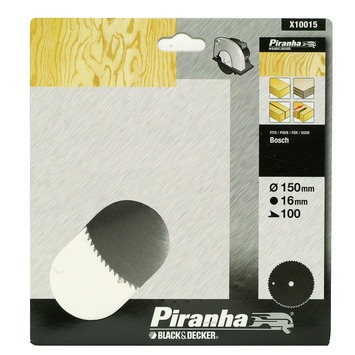 Het Piranha cirkelzaagblad X10015-XJ is geschikt voor het zagen van zachthout en multiplex. Het CV zaagblad heeft een diameter van 150 millimeter, een asgat van 16 millimeter en voorzien van 100 tanden, voor fijne recht- en dwarszaagsneden. Het Piranha cirkelzaagblad X10015-XJ is onder meer geschikt voor de Bosch PKS 46 cirkelzaag.