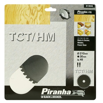 Het Piranha cirkelzaagblad X13045 is geschikt voor het zagen van hout, multiplex, mdf en spaanplaat. Het TCT/HM zaagblad heeft een diameter van 210 millimeter, een asgat van 30 millimeter en voorzien van 48 tanden, voor fijne recht- en dwarszaagsneden. Het Piranha cirkelzaagblad X13045 is onder meer geschikt voor de AEG HK75a, de Black & Decker KS800/810 en de SKIL 1873H cirkelzagen.