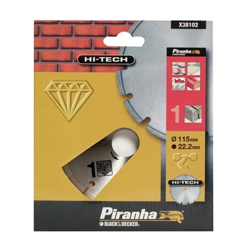 Het Piranha HI-TECH diamantblad gesegmenteerde rand X38102 is geschikt voor het doorslijpen van steen, beton en natuursteen. Het diamantblad heeft een diameter van 115 millimeter en een asgat van 22,2 millimeter. Diamantbladen zagen buitengewoon snel en zijn geschikt voor het droog doorslijpen van het materiaal. Tevens hebben diamantbladen een langere levensduur dan standaard slijpschijven.