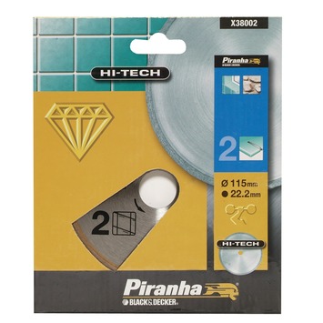 Het Piranha HI-TECH diamantblad volle rand X38002 is geschikt voor het doorslijpen van tegels en keramische tegels. Het diamantblad heeft een diameter van 115 millimeter en een asgat van 22,2 millimeter. Diamantbladen zagen buitengewoon snel en zijn geschikt voor het droog doorslijpen van het materiaal. Tevens hebben diamantbladen een langere levensduur dan standaard slijpschijven.