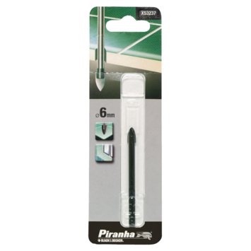 De Piranha HI-TECH tegel-/glasboor X53237 met ronde schacht, is voorzien van een speciaal ontworpen punt voor nauwkeurig boren in keramische of geglazuurde tegels en glas. De kwalitatief hoogwaardig gehard stalen boor heeft een diameter van 6 millimeter en is voorzien van een wolfraam carbide punt.