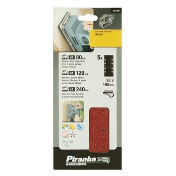 Piranha schuurpapier X31597 K80/120/240 187x93 mm (set 5 stuks)