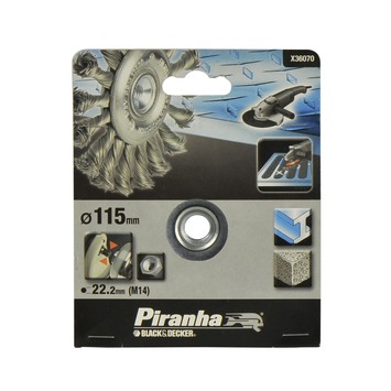Met de Piranha staaldraadband X36070, met een diameter van 115 millimeter, is een platte staalborstel, waarmee je metalen en betonnen oppervlakken kunt reinigen of schuren zonder de ondergrond te beschadigen. De staaldraadband is te gebruiken op de meest gangbare haakse slijpers.