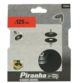 De Piranha steunschijf X32095 is te bevestigen aan je boormachine, zodat deze geschikt wordt gemaakt voor schuurwerkzaamheden. Op de rubberen steunschijf, met een diameter van 125 millimeter, kunnen schuurschijven zonder zelfhechtende laag of klittenband, lamswollen vachten of polijstschijven zonder Velcro-laag worden bevestigd. De Piranha steunschijf X32095 kan op alle typen (klop)boormachines worden bevestigd.