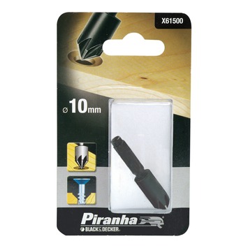 De Piranha verzinkboor X61500, diameter 10 millimeter, voor het boren in hout. De boor is voorzien van een zeskantaansluiting, voor het eenvoudig en snel verwisselen van boren op de accuboormachine.