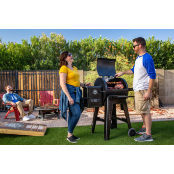 De Pit Boss 550 Pellet Grill uit de Navigator-serie biedt je een krachtige pellet BBQ waarmee je talloze kooktechnieken kunt gebruiken. Deze barbecue heeft een flink kookoppervlak van 542 vierkante centimeter en is voorzien van gietijzeren roosters met een porseleincoating die zorgen voor een gelijkmatige warmteverdeling. Het digitale bedieningspaneel is eenvoudig in gebruik, zodat je de temperatuur moeiteloos kunt instellen tussen 85 en 260 graden Celsius.