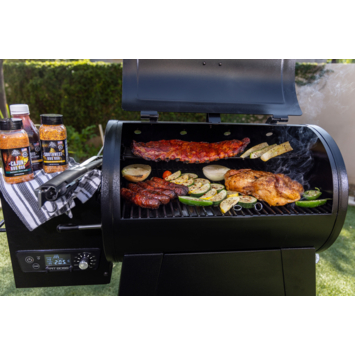 Ben je klaar om je barbecue-skills naar een hoger niveau te tillen? De Pit Boss PB500FB1 pellet BBQ is jouw nieuwe beste vriend. Deze pellet BBQ werkt op houtpellets en zorgt voor een constante, gelijkmatige temperatuur. Dankzij het handige deksel blijft de warmte goed behouden, zodat je vlees perfect gaart. De ingebouwde thermometer helpt je om de ideale temperatuur te bereiken. En als je klaar bent met grillen? Dan rol je de BBQ dankzij de wielen eenvoudig naar een andere plek. Met zijn royale afmetingen van 114,8 x 616,5 x 102 cm heb je genoeg ruimte om voor een groep vrienden of familie te koken.