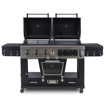 Met de Pitt Boss Memphis Ultimate gas- en houtskool combinatie BBQ haal je een complete buitenkeuken in huis. Dit model biedt drie functies: grillen op gas, barbecueën met houtskool en gerechten langzaam garen in de rookoven. De drie gasbranders leveren 36.000 BTU (British Thermal Unit) en het elektrische rookelement van 1500 watt zorgt voor een constante temperatuur. Dankzij het kookoppervlak van 11.960 cm² bereid je eenvoudig grote hoeveelheden eten tegelijk. Ideaal voor evenementen, buurt BBQ's of een tuinfeest. De vetopvangbak maakt schoonmaken eenvoudig en met de wielen verplaats je de BBQ naar de perfecte plek in je tuin. Of je nu houdt van direct grillen of slow cooking, deze BBQ kan het allemaal.
