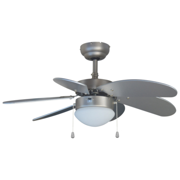 De plafondventilator Verona zilvergrijs 75 cm heeft zes bladen en een trekschakelaar. Het motorhuis is gemaakt van metaal en is nikkelkleurig, de bladen zijn van MDF in zilvergrijs. De ventilator is ook geschikt voor verlichting van maximaal 60 watt (E14). Er zit geen dimmer op de plafondventilator. De plafondventilator heeft drie standen en heeft een doorsnede van 75 centimeter. Daarnaast heeft de ventilator een schakelaar voor zomer- en winterstand, de ventilator is zowel links- als rechtsdraaiend. De plafondventilator is geschikt voor een netspanning van 230 volt.