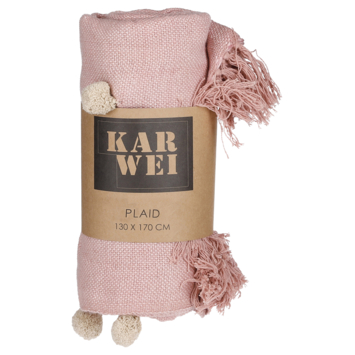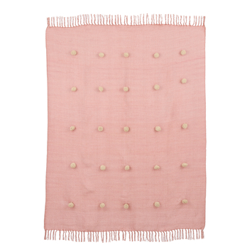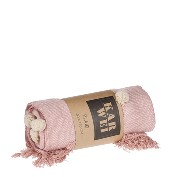 Plaid Pompom peach is mooi, comfortabel en helemaal van nu door de pompoms. De pompoms geven het plaid een speelse uitstraling en door de neutrale peach kleur past dit plaid geweldig in elk interieur. Leuk als decoratie op de bank, of om heerlijk onder te kruipen. De afmetingen van het plaid zijn L170 x B130 cm.