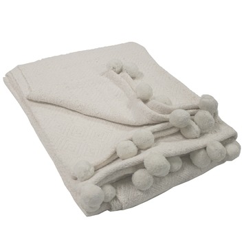 Even heerlijk ontspannen en warm voor de tv zitten met een plaid, is ideaal in koude seizoenen van het jaar. Ook kun je jouw fauteuil of bed bekleden met een plaid. Je creëert zo een warme sfeer in huis. Deze plaid heeft een witte kleur en is 130 bij 170 centimeter. De plaid voelt heerlijk zacht aan en ziet er sierlijk uit met pompons aan de zijkant!