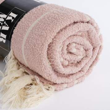 Onder dit zachte plaid kom je echt niet meer vandaan! Deze deken houdt je heerlijk warm wanneer je het nodig hebt: van koude winterdagen tot koele zomeravonden. Het plaid is lichtroze met witte strepen. Door de franjes aan de uiteinden fleurt het kleed je interieur ook nog eens op. Hij is handgemaakt van acryl en de afmetingen zijn L180 x B130 x H1 cm.