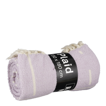 Onder dit zachte plaid kom je echt niet meer vandaan! Deze deken houdt je heerlijk warm wanneer je het nodig hebt: van koude winterdagen tot koele zomeravonden. Het plaid is lila met witte strepen. Door de franjes aan de uiteinden fleurt het kleed je interieur ook nog eens op. Hij is handgemaakt van acryl en de afmetingen zijn L180 x B130 x H1 cm.