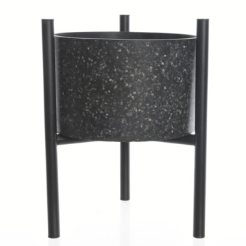 Deze glasvezel plantenbak Casblanca op standaard is zowel binnen als buiten een mooie toevoeging. Als u een stijlvol accent wilt geven aan uw woning of terras, biedt deze bloempot een mooie oplossing. Het ontwerp geeft het item een moderne en strakke uitstraling, en zal ook erg leuk staan op een klein balkon of terras naast bloempotten van andere hoogten. De zwarte kleur past bij iedere plant of bloem. De planter heeft een hoogte van 34 cm en een dia van 28 cm.