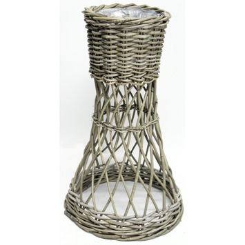 Rotan plantenstandaard met de afmetingen (hxbxd) 70x43x43 cm is een stijlvolle en functionele plantstandaard in van rotan. De plantenstandaard is leuk om een plant op te plaatsen of een accessoire. Ook is het als losstaand product een leuke toevoeging in of buiten het huis. Het rotan geeft een natuurlijk uiterlijk en het grijs voegt een modern element toe. De plantenstandaard is voor binnen en buiten. Als rotan lang nat blijft dan kan het gaan oprekken. Het advies is om de rotan meubelen af te dekken bij regenval.